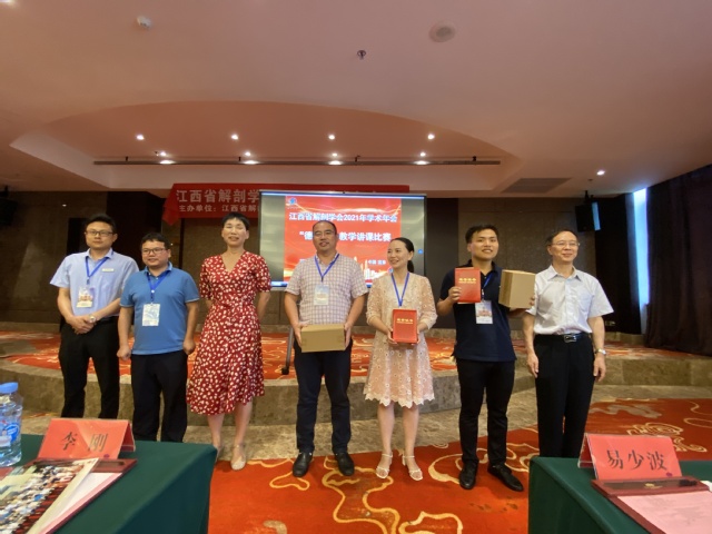 会议内容分为专题报告、学术交流及教学讲课比赛三个部分。南昌大学李刚教授以“课堂教学”为专题,就如何上好一堂真正能让学生喜欢的课,从教学目标设定、教学内容的组织、教学方法的应用、课程思政的实现几个方面深层次多角度地诠释现代教育理念;江西省解剖学会理事长陈红平教授就“长期低度慢性炎症参与TLR4基因敲除诱发自发性肥胖”分享了最新的学术研究成果;南昌大学、赣南医学院、井冈山大学等专家学者就基础医学、临床医学研究以及医学教学改革等方面作了精彩的学术交流;青年教师讲课比赛将会议推向了高潮。在教学讲课比赛中,beat365官网医学院青年教师代表张鹏荣获“德仁杯”一等奖。