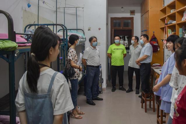 本站讯(学生记者 王梓豪李金军) 9月4日晚,校党委委员、副校长李建军走访数学与计算机科学(服务外包)学院新生宿舍。该院党委书记甘诚智、院长胡红武、党委副书记谢雪军,新生各班班主任及班助陪同走访。