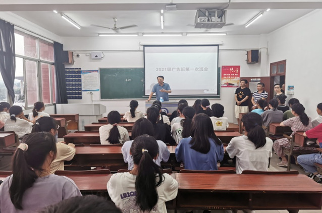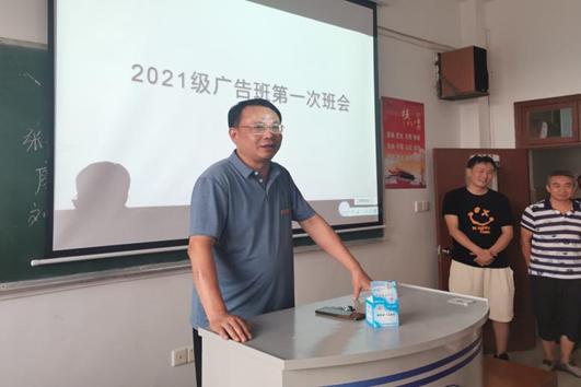 本站讯(文传学院 供稿)9月6日,校党委副书记胡国瑞来到文传学院21级广告班新生的大学第一次班会现场,与新生们进行亲切的交流,送去了学校的慰问和关心。