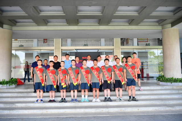 仪式上,罗政介绍了此次参军入伍的同学情况。体育学院钟登杰同学代表此次参军入伍同学作了发言。