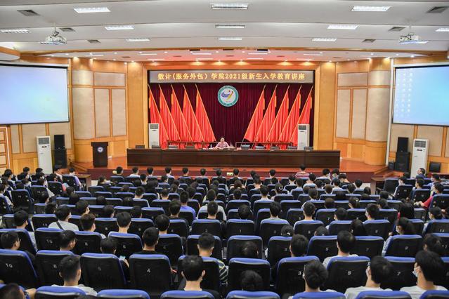 在本站讯(学生记者:王梓豪 艾秀雯 刘俊宏)为进一步加强2021级新生的思想道德建设,9月9日上午,数计(服务外包)学院于学术报告厅开展2021级新生入学教育讲座。原校党委委员、党委宣传部部长杨健受邀出席此次讲座,该院全体2021级新生参加讲座。此次讲座由该院党委副书记谢雪军主持。