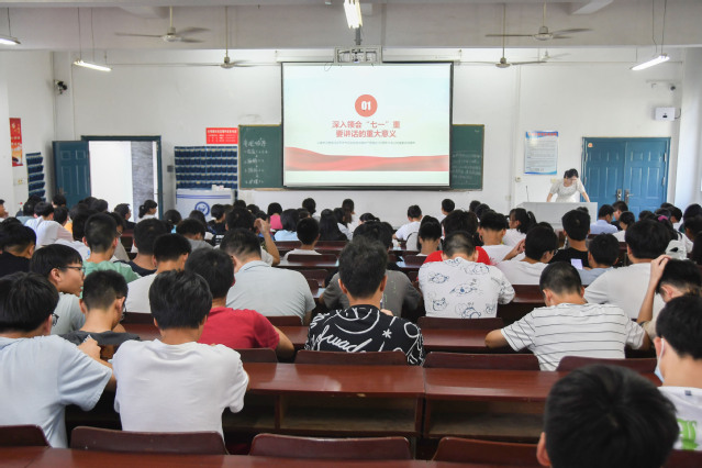 会上,专职组织员曹倩首先和同学们交流了电视剧《觉醒年代》、《山海情》的观后感,重温了中国人民为拯救民族危亡进行的艰难探索和中国共产党百年奋斗的光辉历程,由此引出了此次学习会议的主题。她带领同学们分六个部分深入学习了习近平总书记“七一”重要讲话的精神内涵,详细讲解了“九个必须”的深刻内涵,勉励同学们牢记习近平总书记的殷切嘱托,以实现中华民族伟大复兴为己任,俯下身子沉下心,学好文化知识,锤炼品德修为,坚定理想信念,不负时代,不负韶华,不负党和人民的殷切期望。