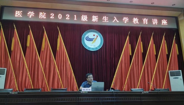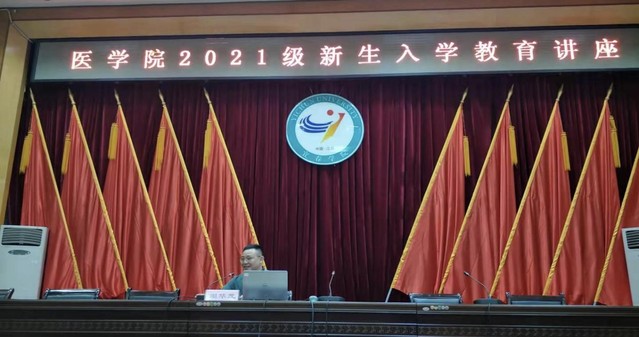 本站讯(医学院 供稿)9月14日上午,医学院在学术报告厅举行2021级新生入学教育暨第142期校友讲坛,开展思想教育、专业教育、创业教育、抗疫教育。该院党委书记彭少君、院校友办主任聂新华、部分辅导员、班主任及全体2021级新生出席会议,该院党委副书记刘斌主持会议。