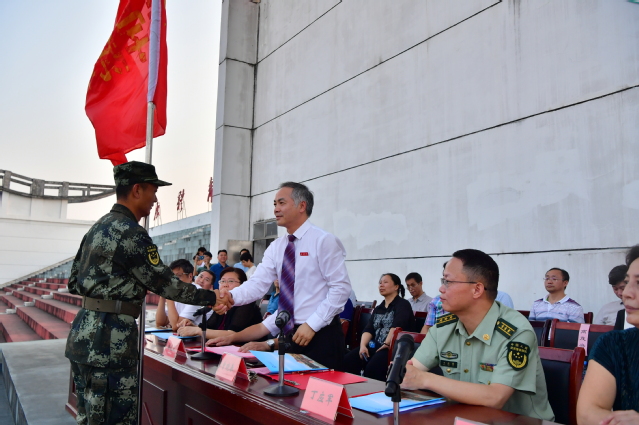 开训仪式上,校党委副书记、校长曾晓春向武警宜春支队授予军训团旗。
