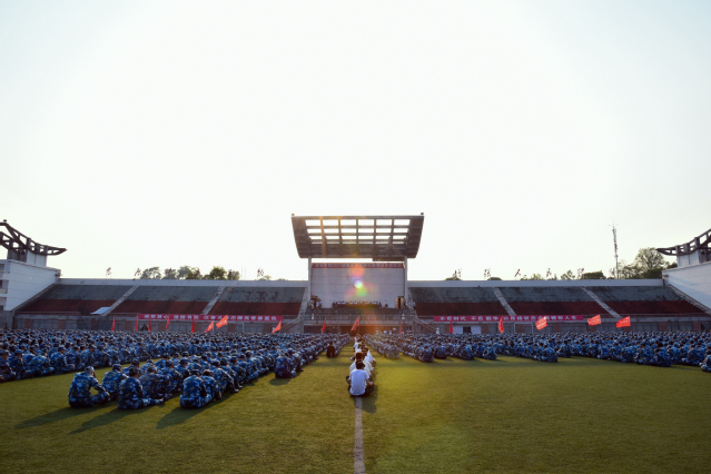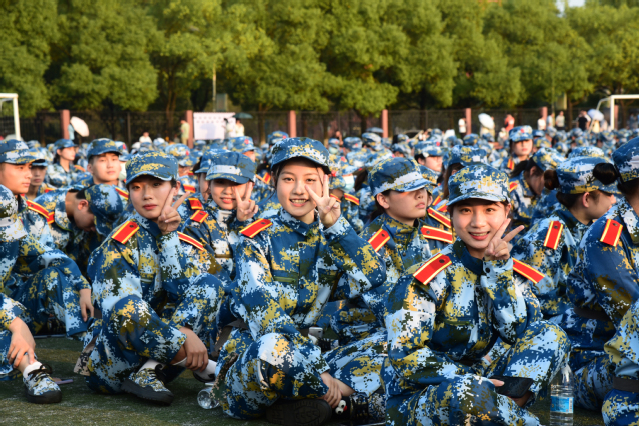 开学典礼结束后举行了军训开训仪式。