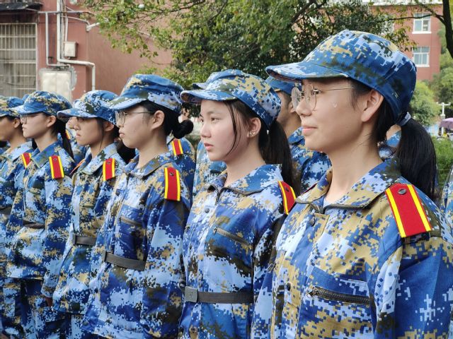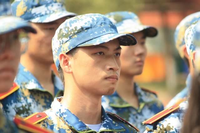九月虽已入秋,阳光依旧毒辣。操场氤氲着热气,新生们身姿依旧挺拔——即便汗水在脸上肆虐,也是意义非凡。站军姿必须要目视前方,保持高度的集中,有片刻的松懈都会导致军姿的不标准。于是新生们只能“与天斗”,调整好角度,尽量避开刺目的阳光。