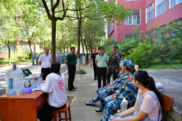校领导向军训教官致以亲切慰问,对他们的辛勤工作表示感谢,并对新生高昂的参训热情、丰富的军训内容表示肯定,鼓励同学们要勇于克服困难,全身心投入军训,通过军训磨砺意志,陶冶情操,为今后的大学生活提供良好的开端。