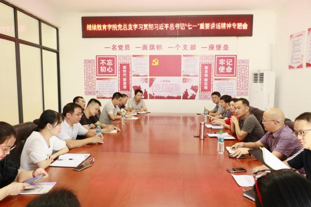 本站讯(继续教育学院 供稿)为深入学习贯彻习近平总书记“七一”重要讲话精神,持续推进党史学习教育,9月22日下午,继续教育学院党总支组织全体党员在继续教育学院会议室,开展学习贯彻习近平总书记“七一”重要讲话精神专题会。