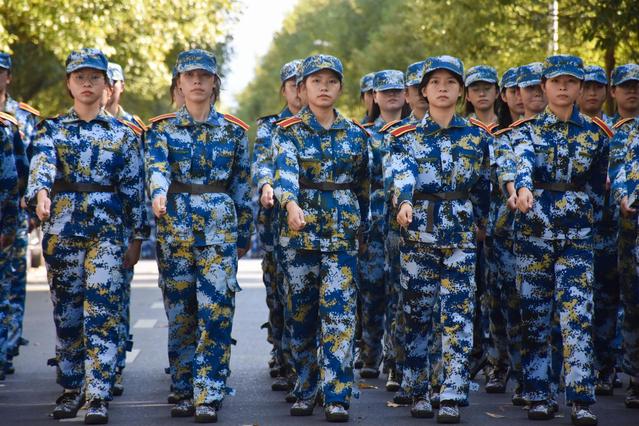 巾帼向来不让须眉。站军姿,明军纪,行军礼,唱军歌……是女子,也是花季的青春少女,更是勇敢无畏的女兵。九月底的阳光依旧火辣而张扬,女生绷着脸,额头上冒出细汗,打湿了头发,但女孩们没有抱怨。训练场上,踢正步,一令一动,绷直脚尖,一停就是一分钟。“齐步-走、一二一、一、二、三、四、立定”,在教官的指示下,她们来回踏着步,伴着阳光与汗水,教官的每一个指令,她们都尽力地完成,每个动作、姿态,甚至是角度,她们都反复琢磨,认真地练习着,不敢有一丝松懈,力求做到规范整齐,直到自己的动作做到标准,直到教官满意的点头。就是这样一群坚持不懈、永不服输的女孩,全然以“我是一个兵”的心态认真对待、严格律己,组成了一支女子尖刀排方阵,她们用笔挺的军姿、清脆的口号、干净利落的动作展示了巾帼不让须眉的气势,将永不言弃的精神传承下去。
