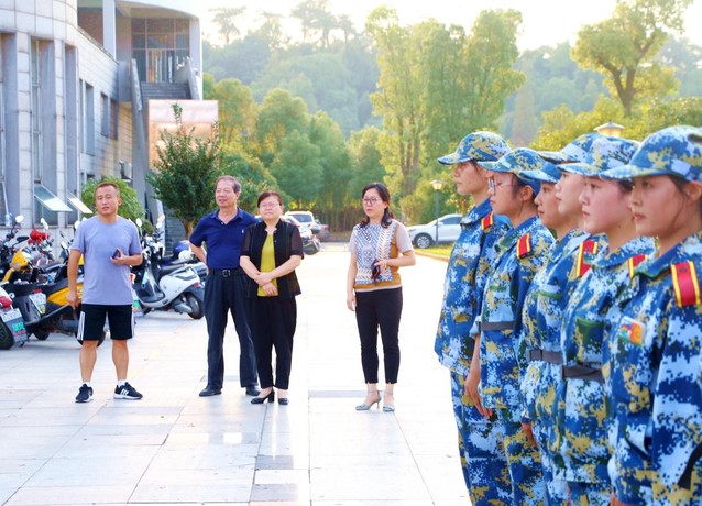 本站讯(学生记者 陈家乐)9月26日下午,校党委委员、副校长余新卫在体育学院相关领导陪同下深入军训场地,看望慰问体育学院军训教官和参训新生。