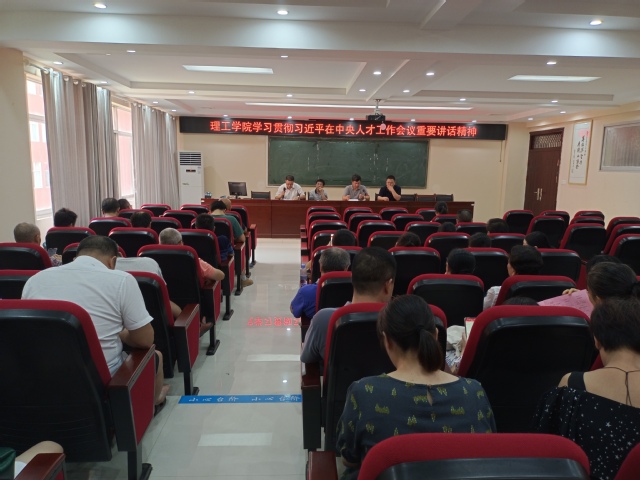 本站讯(理工学院 供稿)9月29日下午,理工学院在理工楼召开全院教师大会,学习传达习近平总书记在中央人才工作会议上的重要讲话精神。