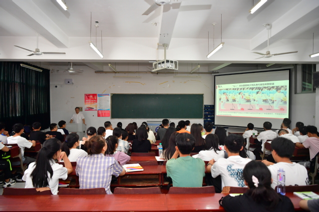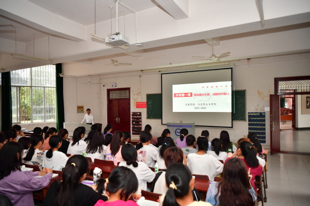 校领导以《担当复兴大任,成就时代新人》为题,从“我们处在中国特色社会主义新时代”“新时代呼吁担当民族复兴大任的时代新人”“如何提升思想道德素质和法治素养?”三个方面为同学们讲授课程内容。