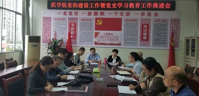 本站讯(医学院 供稿)10月12日下午,医学院党的建设工作暨党史学习教育工作推进会在院党员会议室召开。医学院院党委书记、院党委副书记、专职组织员、各党支部书记、各党支部组织委员及宣传委员参加了会议,会议由该院党委副书记刘斌主持。