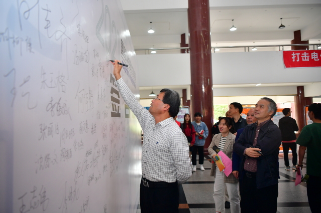 活动现场,相关单位向参与师生发放了宣传手册,到场师生纷纷承诺将坚决维护网络安全,共享网络文明,并在签名墙上签下自己的名字。市检察院还举行了“打击治理电信网络诈骗犯罪”主题宣讲。