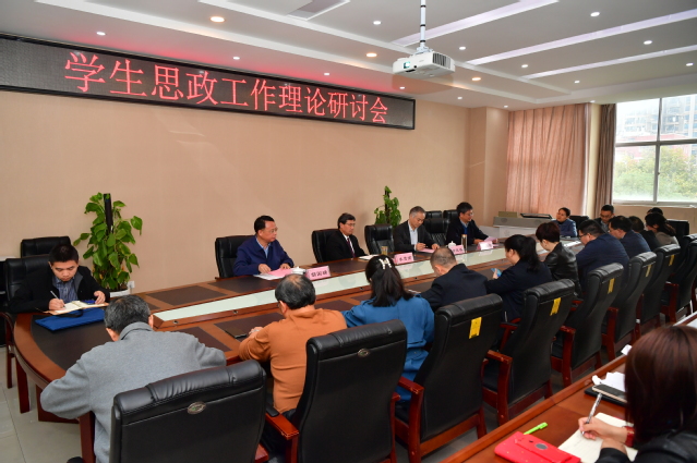 本站讯(学工处 供稿)为进一步加强学生专职干部队伍政治理论水平,提高思政工作管理能力,10月19日下午,学生专职干部队伍在学生工作处(部)举行学生思政工作理论研讨会。校党委书记李雪南,校党委副书记、校长曾晓春,校党委副书记胡国瑞到会进行指导。各教学院分管学生工作领导、学生事务办公室负责人、学工处与团委科级以上干部参加会议。会议由校党委委员、副校长邱家明主持。