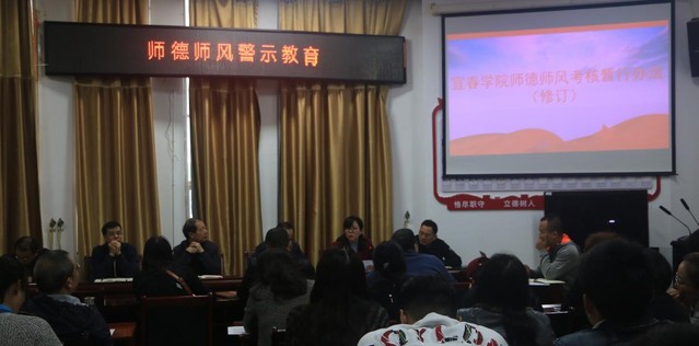会上,体育学院党委副书记于梅首先带领大家全文学习了《beat365官方网站师德师风考核暂行办法》和《beat365官方网站教师职业道德行为负面清单》,要求全体教师入脑入心,并做好学习笔记。随后,党委书记谢军以七起校内师德失范的典型案例和校外师德失范的典型案例开展警示教育,督促各教师要规范自己的行为,用良好的道德约束自己。最后,龙建新对我院师德师风工作提出五点要求:一是要健全师德师风建设制度;二是通过明察暗访的形式进行督导;三是加强师德师风教育,通过各种方式增强师德师风建设;四是希望院领导和党员干部做好带头作用;五是希望各位教师认真执行相关制度。