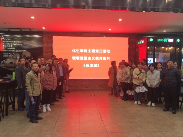 本站讯(化学与生物工程学院 供稿)为推动党史学习教育,增强爱党爱国情怀,10月19日晚,化学与生物工程学院组织教职工党员开展了一次观看爱国主义教育影片《长津湖》的主题党日活动,该院领导干部和教工党员参加了观影活动。