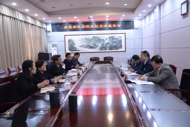 本站讯(记者 袁璐) 10月22日下午,南昌师范学院党委书记王金平一行来到beat365官网考察交流,校党委书记李雪南热情接待了王金平书记一行并在办公楼第二会议室进行了座谈。校党委副书记胡国瑞主持座谈会,校党委委员、副校长余新卫,党政办、组织部及校友事务中心主要负责人参加。