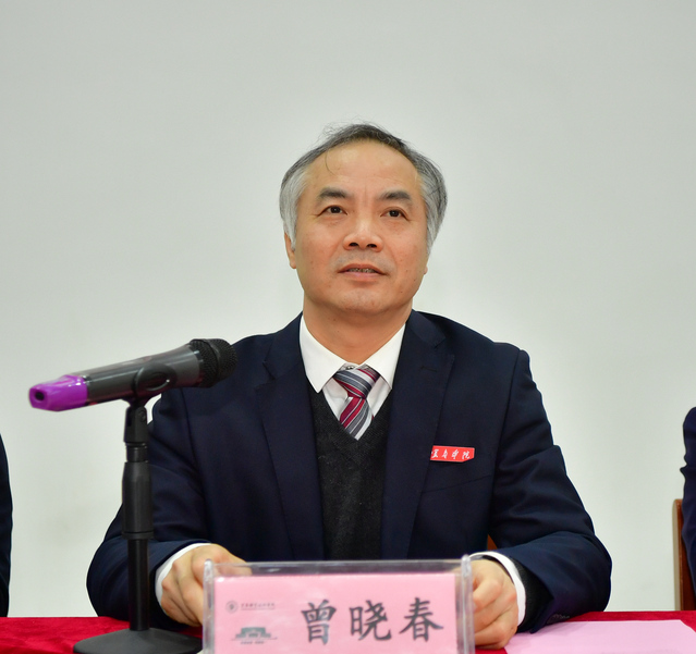 曾晓春为新生致辞,他指出,在两校的共同努力下,开拓性地开展了护理学专业本科层次的技术技能型人才培养,汇集两个学校的优势资源,共同培养学生成长成才,感谢宜春职业技术学院为培养学生所做出的努力,并对同学们提出了三点希望,一是要坚定理想信念,厚植家国情怀,做一个有“高度”的新时代青年;二是要加强品德修养,始终向善而行,做一个有“温度”的新时代青年;三是要珍惜学习机会,练就过硬本领,做一个有“热度”的新时代青年。
