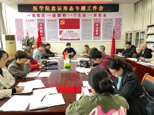 本站讯(医学院 供稿)10月20日下午,医学院在院党员会议室召开2021年下半年意识形态专题工作会。该院领导班子成员、科级以上干部、各党支部书记、各党支部委员参加了会议,会议由院党委副书记刘斌主持。