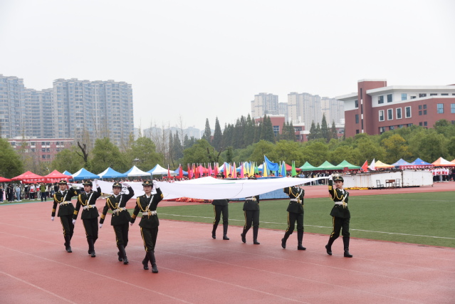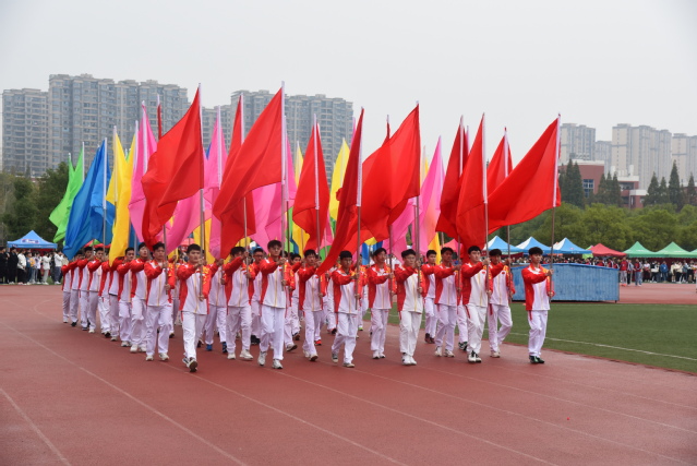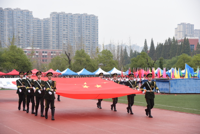 伴随着庄严雄壮的进行曲,国旗护卫队斗志昂扬、步伐整齐进入会场,他们手持国旗和会旗走过主席台,以良好的精神面貌展示beat365官网学子风采。红旗飘飘,方阵井然,鲜花队、彩旗队依次入场,展现出莘莘学子的青春活力。裁判员、志愿者、教职工、研究生以及各教学院的方阵代表队紧随其后,他们步伐矫健、意气风发,以良好的精神风貌迎接校运会的比赛。