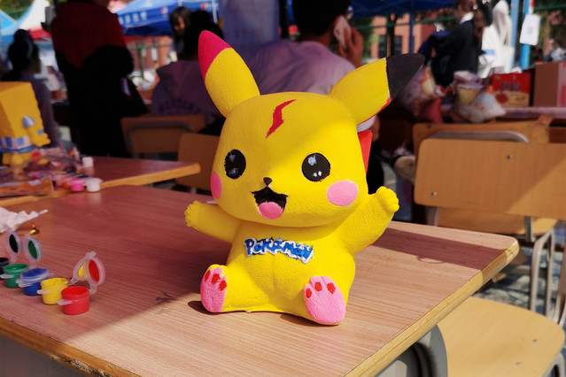 刚踏进摆满红色帐篷的排球场内,映入眼帘的便是人满为患的手绘DIY区域,区域正中心,绘画者正在用彩色的画笔为那白色的玩偶上色涂鸦,草草几笔体现的尽是自己心中的无限幻想。有人把玩偶涂成叮当猫的造型,希望能从他神奇的口袋中找到自己想要的一切;有人将玩偶涂成了五颜六色,想必他的眼中这个世界也是缤纷多彩、其乐无穷的。看着绘画者们都在一丝不苟地为自己的玩偶上色,来自青年创业者协会的曾美姗说道:“为了能满足广大消费群体,让他们尽情把自己的奇思妙想展现在玩偶上,我们提前很多天进行了准备工作,从采购颜料到制作纯白色的玩偶,每一步都是我们精挑细选得来的成果,看到他们拿到自己绘出的玩偶后的笑容,我们也很开心,感觉一切努力都是值得的。”
