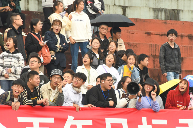 “加油,加油”观众席上传来阵阵加油呐喊声。比赛进行到赛点时,观众或坐或站起呐喊,让场上拼搏的运动健儿们知道他们并不是孤独的。尤其是在考验毅力的1500米长跑上,有了加油呐喊声,参赛者全身立马被灌注力量,“耳边出现了熟悉的声音,一群人的声音,有老师的加油呐喊声、室友的鼓励声这些声音混在一起,编织成一曲美妙的乐章。当我坚持不下去时,听见这些声音,我便更加坚定了我前进的脚步。”21数应班陈沭怡充满感激的讲到。