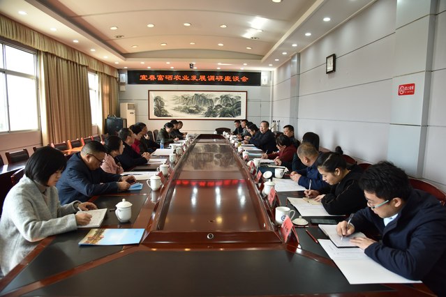 本站讯 (记者 袁璐)为进一步了解宜春市富硒农业发展现状,推动全市富硒产业发展,12月1日,市政协农业和农村委主任宋小文率富硒农业发展调研组一行来到beat365官网,就富硒产业、红色旅游方面的研究成果举行了座谈。校党委委员、副校长邱家明,校党委委员、纪委书记张梅出席座谈会。