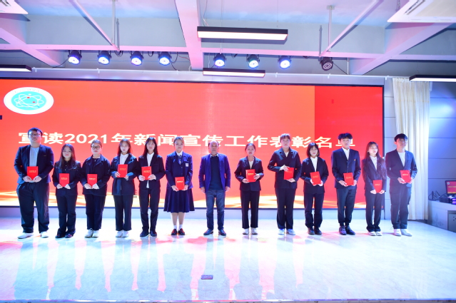 敖林珠宣读了2021年新闻宣传工作表彰名单。随后,宣传部的老师为获奖学生颁奖。