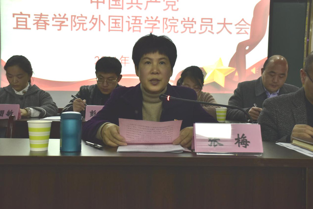 张梅在大会讲话中充分肯定了该院在教育、管理、服务各层面的努力和成绩,学校党委、行政将一如既往为外国语学院建设与发展创造条件、提供支持,并对该院发展提出了新的要求和期望:一要认真落实新时代党的建设总要求,坚持和加强党对一切工作的领导,以党的政治建设为统领,推动全面从严治党向纵深发展。二要以绝对忠诚为魂,做到忠诚核心、忠诚信仰、忠诚组织;三要以服务群众为本,厚植为民情怀,多办利民之事,筑牢基层党组织这个为民根基;四要以担当实干为先,切实增强主人翁意识,积极发扬斗争精神,营造好敢担当的环境;五要以清正廉洁为荣,强化不敢腐的震慑,扎紧不能腐的笼子,增强不想腐的自觉,努力建设风清气正的政治生态。外国语学院全院上下和师生员工要继续发扬外国语学院的优良传统,不断改革创新,苦干实干,努力争取新的成绩,推动外国语学院高质量发展!