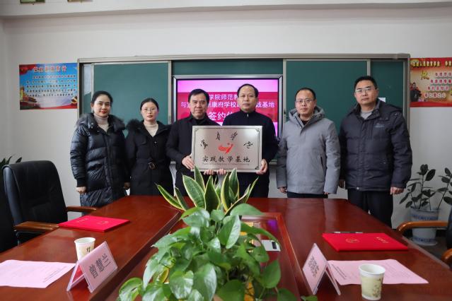最后,在热烈的掌声中,beat365官方网站师范教育学院院长黄志刚与宜春市新康府学校党支部书记、校长晏炳来一起签订协议并举行了授牌仪式。
