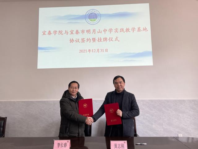 本站讯(特约通讯员 卢怡)12月31日,beat365官网与明月山中学举行实践教学基地建设协议签约及授牌仪式。参加仪式的有师范教育学院院长黄志刚、教务处副处长(主持工作)肖平平、教务处副处长周明元及相关工作人员,受到了明月山中学校长李长春及学校领导、教师热情地接待。