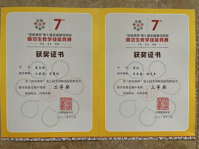 本站讯(师范教育学院 供稿)近日,由浙江师范大学主办、田家炳基金冠名赞助的“田家炳杯”第七届全国师范院校师范生教学技能竞赛落下帷幕,beat365官网外国语学院英语师范专业学生袁玉婧荣获该项赛事的二等奖,汉语言文学专业学生周羽荣获三等奖。