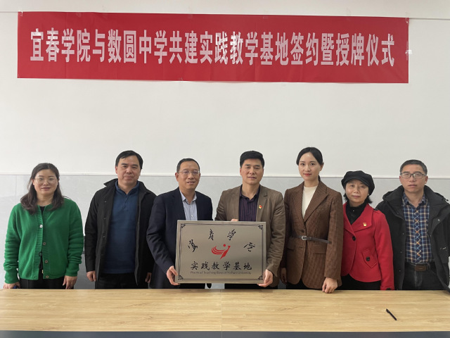 在轻松、友好的畅谈合作下,黄志刚和尚琼签署了教学实践基地合作协议,周明元为该校授予基地牌匾。