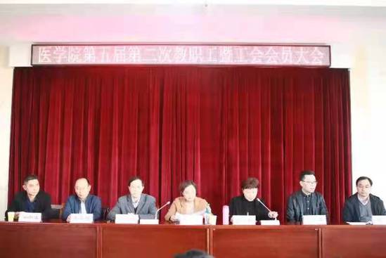 本站讯(医学院 供稿)3月9日下午,医学院第五届第二次教职工暨工会会员大会于逸夫楼N401召开。校党委委员、副校长蒋钰在校工会相关人员的陪同下到会指导,院领导班子成员及全院教职工、部分学生代表参加会议,会议由院党委书记彭少君主持。