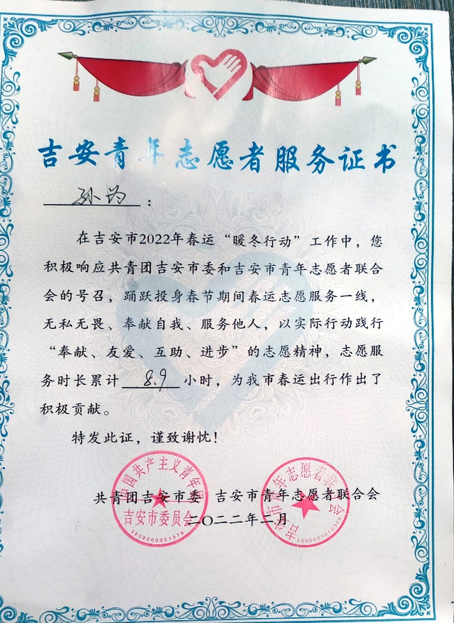 一位在医院门口检查赣通码和行程码的志愿者说道:“ 在做志愿者期间,我每天和医院工作人员共同工作,我体会到了他们的不容易,每天一站就是四五个小时,当面对不理解工作的人员还要微笑着耐心解释,让他们配合,在做志愿者期间,我也从一开始的拘谨不敢上前,到后期的落落大方,主动上前帮助他人扫码注册,这极大地锻炼了我与人沟通交流的能力,作为一名大学生,我认为参与志愿者活动也是一种提升自我价值的方式,在帮助别人的时候展现了个人价值。在今后,我将会继续响应国家、号召,按照学校、学院的人才培养要求,积极参加各类志愿服务活动,从个人做起,从小事做起,为社会为人民奉献青春力量。”