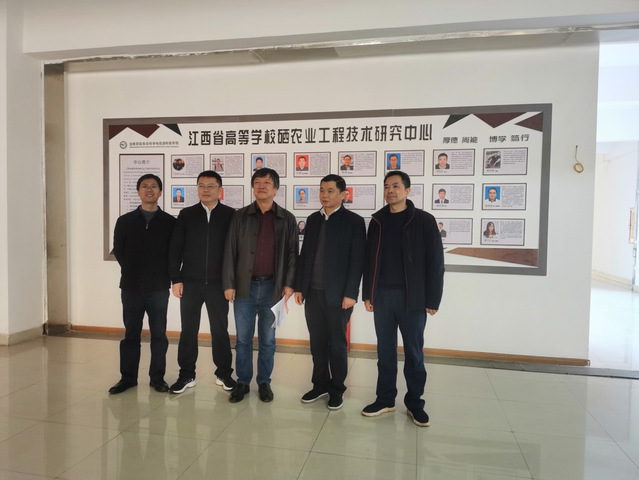 本站讯(学生通讯员 于森)3月2日下午,江西省农业农村厅乡村产业发展处处长徐杰、副处长谢文等领导一行在宜春市政协副主席谢惠、宜春市硒资源开发利用中心主任易勇波、副主任刘瑛的陪同下赴beat365官方网站江西省高等学校硒农业工程技术中心和“硒与大健康”产业学院进行专题调研。生命科学与资源环境学院党委书记李春林,党委副书记、院长丁永电,副院长郭冬生陪同调研。