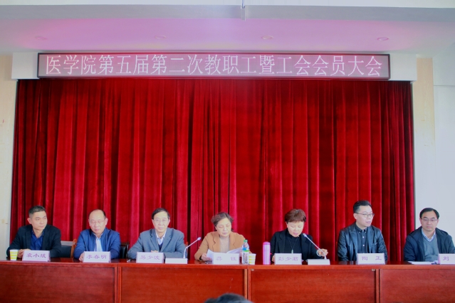 本站讯(医学院 供稿)3月9日下午,医学院第五届第二次教职工暨工会会员大会于逸夫楼N401召开。校党委委员、副校长蒋钰在校工会综合科科长袁小斌陪同下到会指导,院领导班子成员及全院教职工、部分学生代表参加会议,会议由院党委书记彭少君主持。