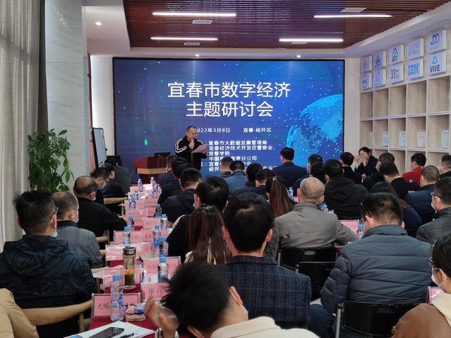 本站讯(数计学院 供稿)3月8日,宜春市大数据发展管理局、宜春经济技术开发区管委会在宜春经开区青年云数字经济产业园,共同举办了宜春市数字经济主题研讨会。会议以“工业互联网赋能智能制造业”为主题,邀请中国电信(江西)工业互联网研究院副院长张俊作了专题讲座。宜春市大数据发展管理局局长丁朝科,经开区管委会副主任吴智魁,中国电信宜春分公司总经理汪祖源,宜春市互联网协会等单位有关负责同志,广东兴发铝业(江西)有限公司、江西金辉锂业有限公司等53家园区企业高管参加了会议,并围绕会议主题展开了热烈讨论交流。数学与计算机科学(软件服务外包)学院党委书记甘诚智应邀参加研讨交流。