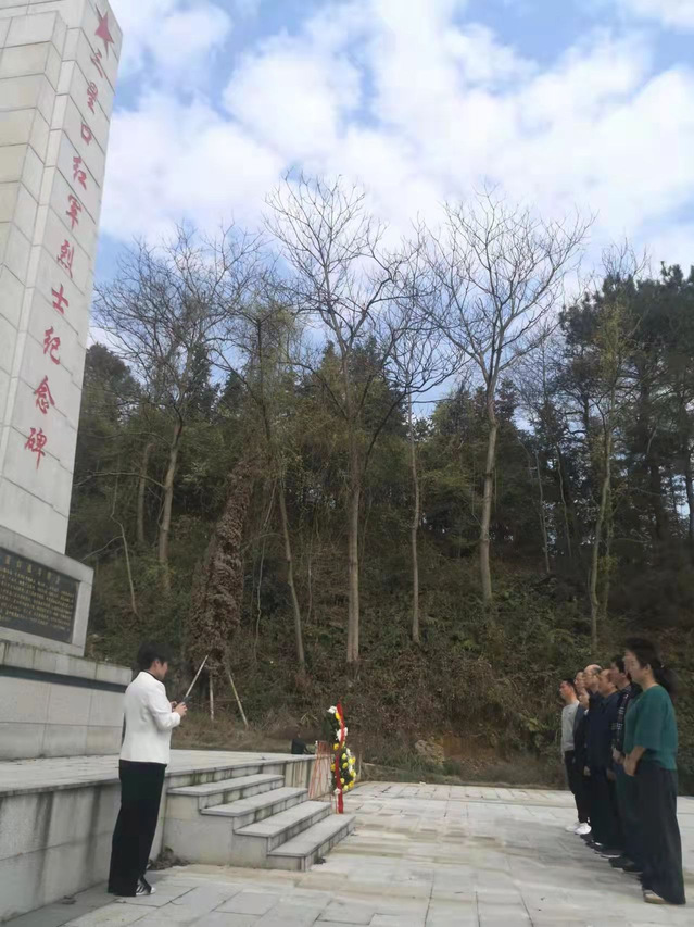 “青山处处埋忠骨”,矗立的纪念碑记载着先烈们的豪情,唱着英雄的赞歌,诉说着昔日的峥嵘岁月……烈士碑前,全体党员严正肃立,向烈士们默哀并敬献鲜花!随后,一行人参观了“三星口战斗纪念馆”,回顾英雄们的艰苦征程和光辉历史。