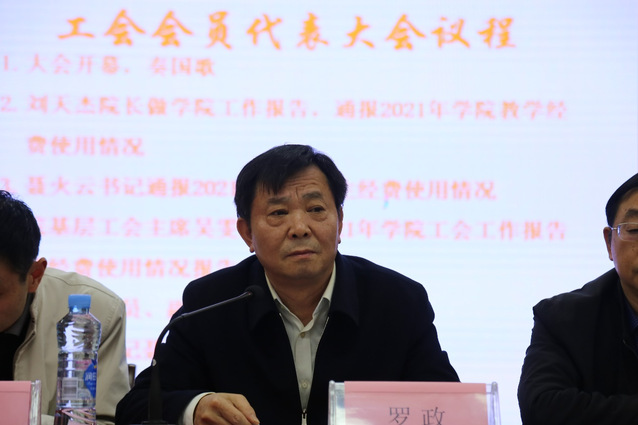校党委委员、副校长罗政代表学校党委行政对政法学院2021年在党建工作、产教融合和服务地方经济社会、科研质量提升等方面的成绩给予充分肯定,并对做好2022年度的工作提出明确要求:要更加加强党建工作,以党建为引领,把好方向,掌握发展态势;要更加加强内部管理,用制度约束人,把存在的问题解决好;要解放思想、开拓思路、大胆创新,把专业办出特色;要充分发挥工会的桥梁纽带作用,提升全院师生凝聚力;要加强团结,心往一处想,鼓足干劲,以优异成绩迎接党的二十大的召开。