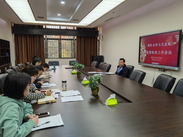 本站讯(国际合作与交流处 供稿)为落实上级关于妥善应对当前严峻复杂疫情防控形势的工作要求,切实做好校园疫情防控工作,3月14日下午,国际合作与交流处召开疫情防控工作会。会议由处长吴永顺同志主持,国际合作与交流处(国际教育学院)工作人员参加会议。