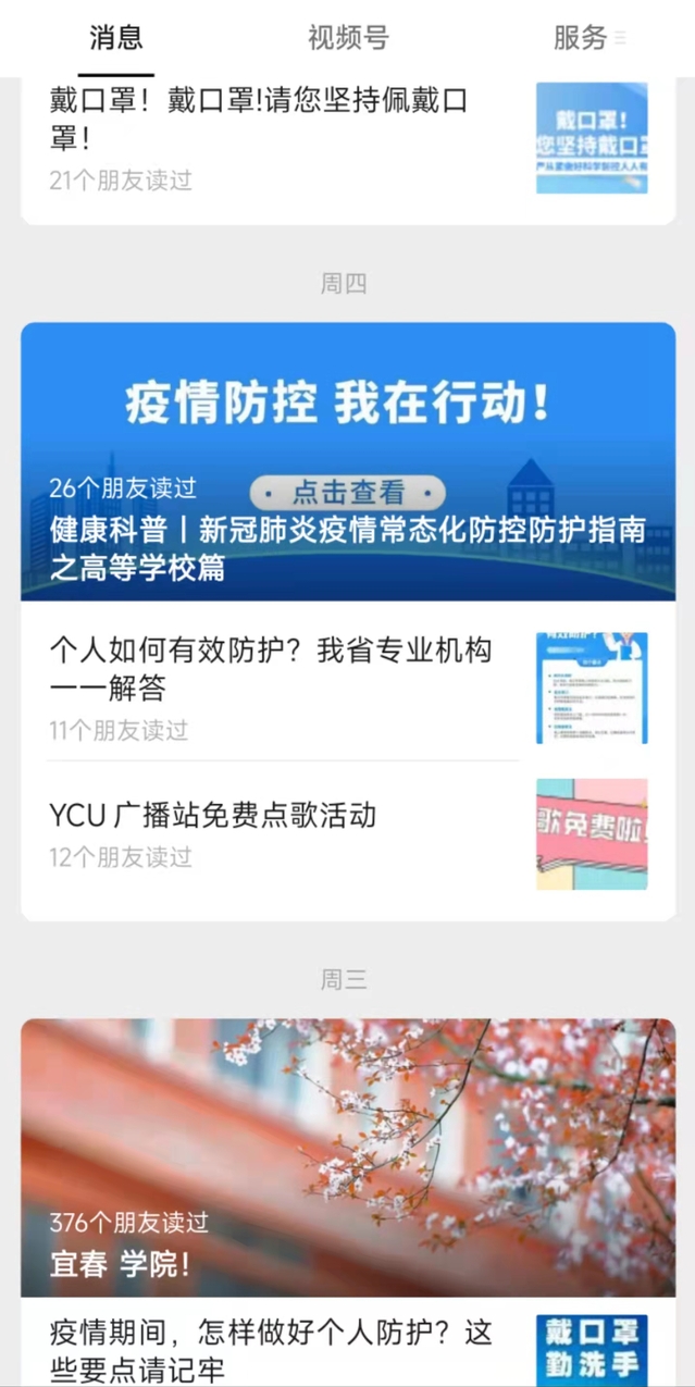党委宣传部通过微信公众号、微博、官网等平台做好疫情防控宣传,凝聚师生齐心抗疫的强大合力,推动形成“疫情防控,人人有责”的浓厚氛围。