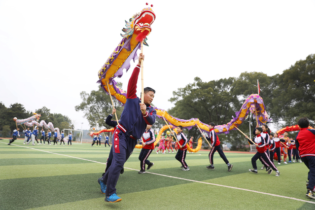 “传统体育要进校园,不然舞龙试试?”简玲伟提议舞龙,倒不是突发奇想。上大学期间的每年中秋节,他都代表学校参加了宜春市月亮文化节“火龙追月”活动,每年的“火龙活动”大型民俗活动都是万人空巷、场面壮观、技艺高超、令人震撼!而且,舞龙舞狮在镇渡也有基础和传统。
