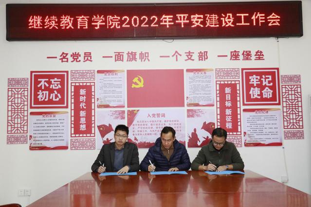 随后,院长付文杰与副院长翁弟芳、副书记张朝辉及分管科室负责人分别签订了《继续教育学院2022年平安建设责任书》。