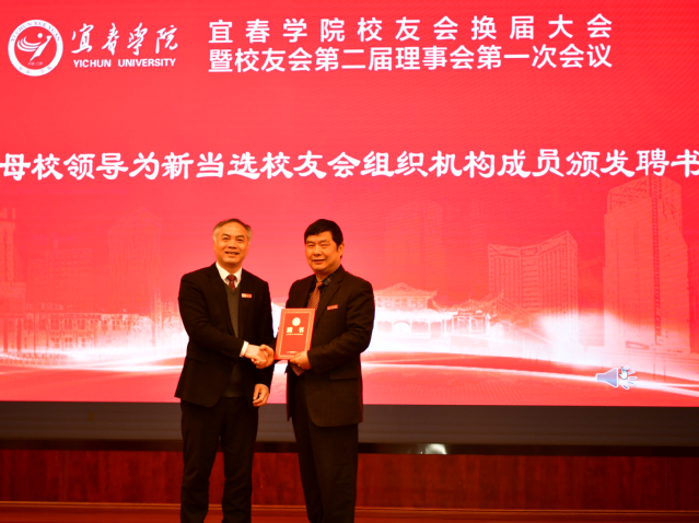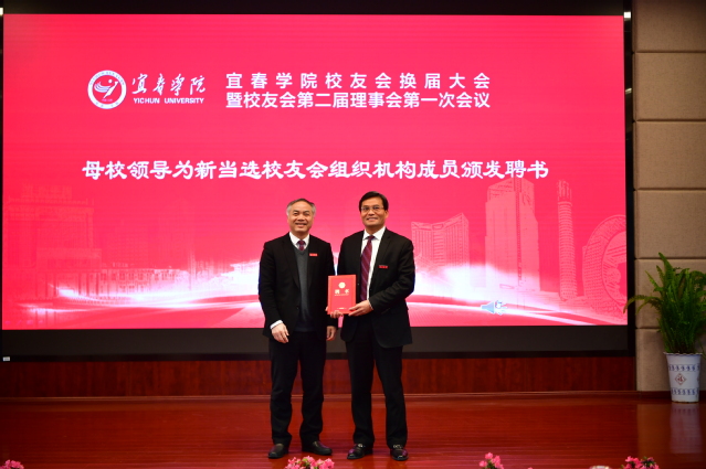 校党委副书记、校长曾晓春为新当选的校友会会长和秘书长颁发了聘书。