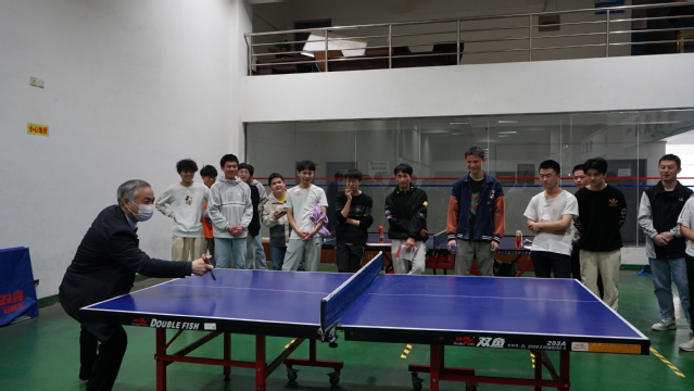 在书法艺术学院,李雪南一行和学生交流,勉励她们利用好假期,练好本领。在体育馆,物理科学与工程技术学院的同学们正在班主任陈浩的带领下开展乒乓球友谊赛,李雪南饶有兴趣的和同学们切磋球技。李雪南鼓励同学们多锻炼,多运动,强健体魄,更好地投入到学习生活中。