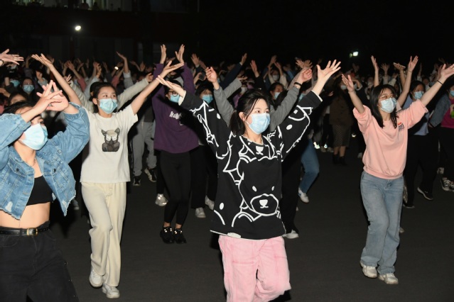 广场舞的策划者之一,是音乐舞蹈学院辅导员吴丽芳,她告诉记者:“学校实行相对封闭式管理,除了做好学生教育、安全、防控等工作以外,最重要的是加强学生的心理疏导工作,帮助学生舒缓压力,点燃青春之火。”广场舞现场,时不时可以通过音箱听到吴丽芳老师的声音,她一遍又一遍的向在场学生强调着保持间距的相关事项。“我们每天规定了参与的人数,现场还有青年志愿者协会的同学们维护秩序,监督学生佩戴口罩,保持距离,一定做到让学生放松的同时,严格遵循学校疫情防控的要求。”