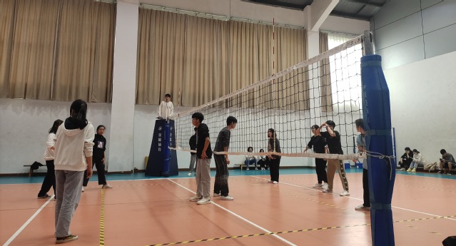 “走,去排球场,今天和院里老师打友谊赛!”