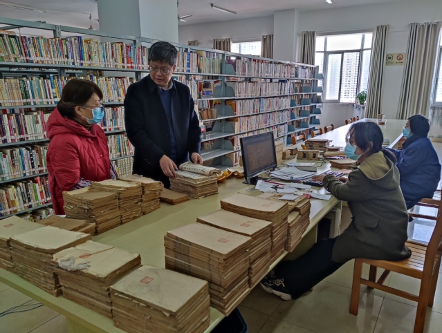 本站讯(图书馆供稿)4月2日上午,校党委委员、副校长邱家明到图书馆就古籍整理工作进行调研指导,副馆长易斌陪同调研。